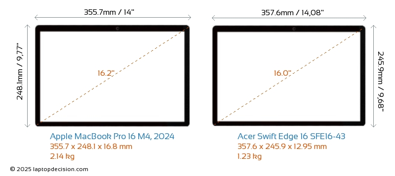 Thunderbolt MacBook Pro 16 M4, 2024 está equipado con un puerto Thunderbolt 5. Swift Edge 16 SFE16-43 no tiene puerto Thunderbolt.