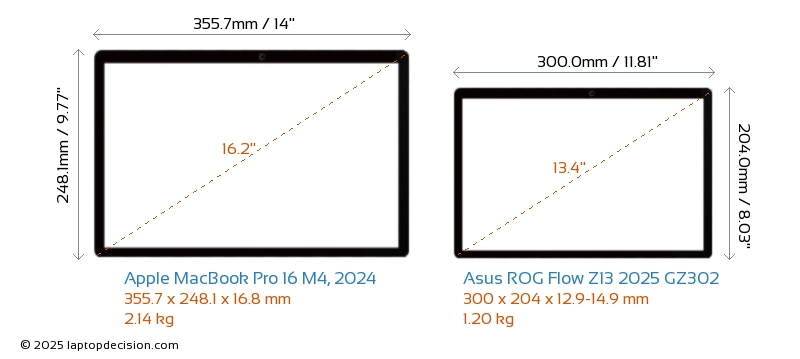 HDMIAmbos MacBook Pro 16 M4, 2024 y ROG Flow Z13 2025 GZ302 cuentan con un puerto HDMI (1x HDMI 2.1) para conectar a monitores externos.