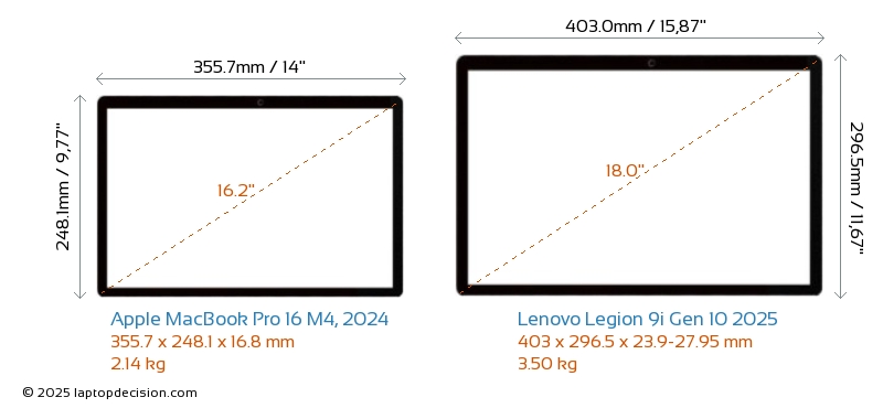 HDMIAmbos MacBook Pro 16 M4, 2024 y Legion 9i Gen 10 2025 cuentan con un puerto HDMI (1x HDMI 2.1) para conectar a monitores externos.