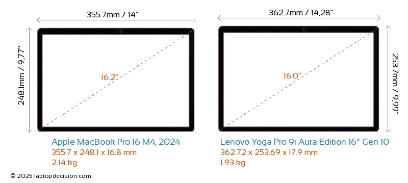HDMIAmbos MacBook Pro 16 M4, 2024 y Yoga Pro 9i Aura Edition 16" Gen 10 cuentan con un puerto HDMI (1x HDMI 2.1) para conectar a monitores externos.