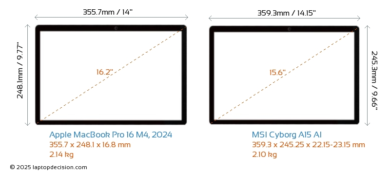 HDMIAmbos MacBook Pro 16 M4, 2024 y Cyborg A15 AI cuentan con un puerto HDMI (1x HDMI 2.1) para conectar a monitores externos.