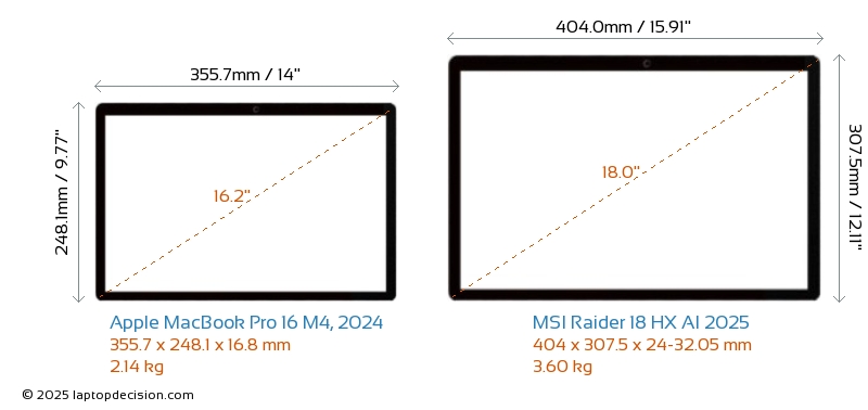 HDMIAmbos MacBook Pro 16 M4, 2024 y Raider 18 HX AI 2025 cuentan con un puerto HDMI (1x HDMI 2.1) para conectar a monitores externos.