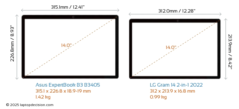 USBAmbos ExpertBook B3 B3405 y Gram 14 2-in-1 2022 cuentan con 2x USB 3.2 puertos USB-A.Ambos ExpertBook B3 B3405 y Gram 14 2-in-1 2022 cuentan con 2x USB 4.0 puertos USB Type-C.