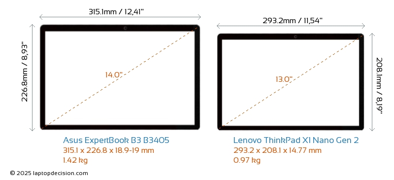 HDMI ExpertBook B3 B3405 cuenta con un puerto HDMI (1x HDMI 2.1) para conectar a monitores externos. ThinkPad X1 Nano Gen 2 no tiene puerto HDMI.