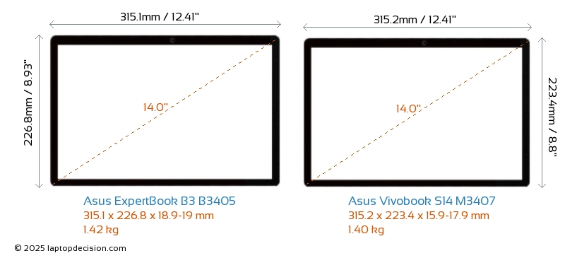 USBAmbos ExpertBook B3 B3405 y Vivobook S14 M3407 cuentan con 2x USB 3.2 puertos USB-A.Ambos ExpertBook B3 B3405 y Vivobook S14 M3407 cuentan con 2x USB 4.0 puertos USB Type-C.