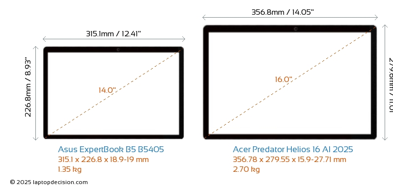 HDMIAmbos ExpertBook B5 B5405 y Predator Helios 16 AI 2025 cuentan con un puerto HDMI (1x HDMI 2.1) para conectar a monitores externos.
