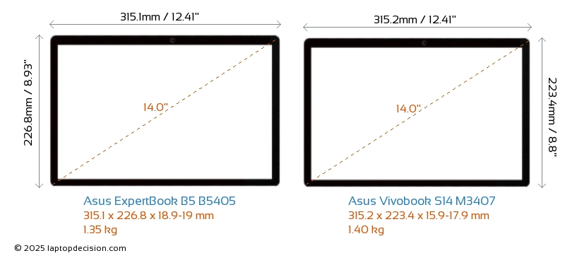 HDMIAmbos ExpertBook B5 B5405 y Vivobook S14 M3407 cuentan con un puerto HDMI (1x HDMI 2.1) para conectar a monitores externos.
