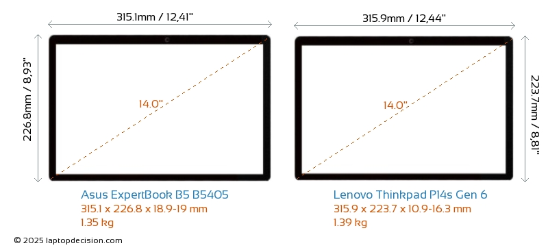 HDMIAmbos ExpertBook B5 B5405 y Thinkpad P14s Gen 6 cuentan con un puerto HDMI (1x HDMI 2.1) para conectar a monitores externos.
