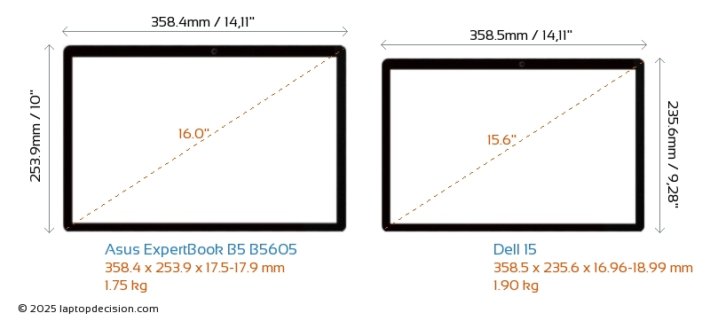 Thunderbolt ExpertBook B5 B5605 está equipado con un puerto Thunderbolt 4. 15 no tiene puerto Thunderbolt.