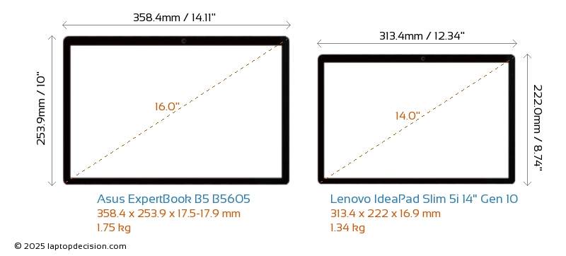 USBAmbos ExpertBook B5 B5605 y IdeaPad Slim 5i 14" Gen 10 cuentan con 2x USB 3.2 puertos USB-A.Ambos ExpertBook B5 B5605 y IdeaPad Slim 5i 14" Gen 10 tienen puertos USB Type-C. ExpertBook B5 B5605 tiene 2x USB 4.0 puertos USB Type-C, mientras que IdeaPad Slim 5i 14" Gen 10 tiene 2x USB 3.2 puertos USB Type-C.