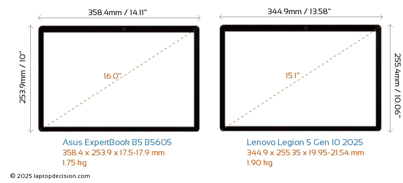 Thunderbolt ExpertBook B5 B5605 está equipado con un puerto Thunderbolt 4. Legion 5 Gen 10 2025 no tiene puerto Thunderbolt.