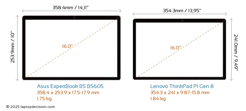 HDMIAmbos ExpertBook B5 B5605 y ThinkPad P1 Gen 8 cuentan con un puerto HDMI (1x HDMI 2.1) para conectar a monitores externos.