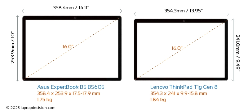 HDMIAmbos ExpertBook B5 B5605 y ThinkPad T1g Gen 8 cuentan con un puerto HDMI (1x HDMI 2.1) para conectar a monitores externos.