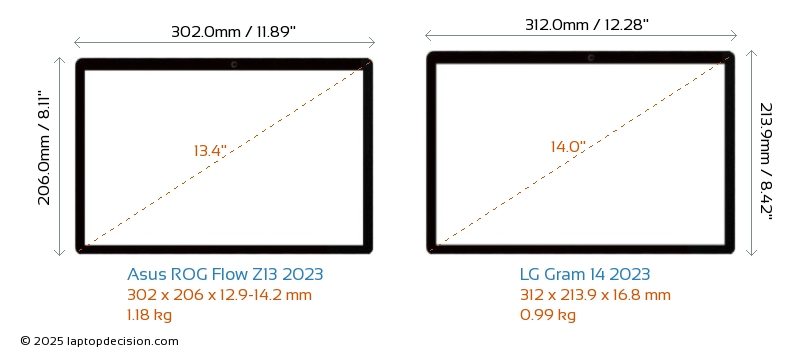 HDMI Gram 14 2023 cuenta con un puerto HDMI (1x HDMI 2.0) para conectar a monitores externos. ROG Flow Z13 2023 no tiene puerto HDMI.
