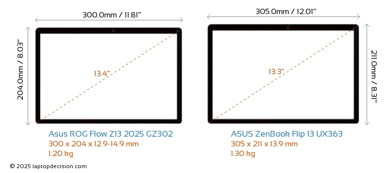ThunderboltZenBook Flip 13 UX363 está equipado con un puerto Thunderbolt 4. ROG Flow Z13 2025 GZ302 no tiene puerto Thunderbolt.