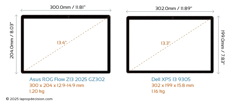 ThunderboltXPS 13 9305 está equipado con un puerto Thunderbolt 4. ROG Flow Z13 2025 GZ302 no tiene puerto Thunderbolt.