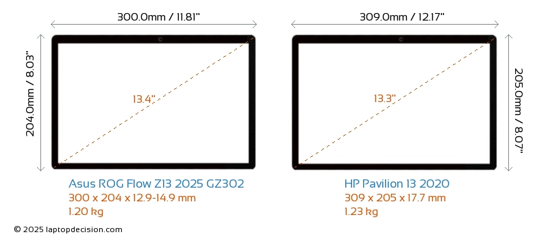 ThunderboltNinguno de los dos ROG Flow Z13 2025 GZ302 ni Pavilion 13 2020 tiene puerto Thunderbolt.