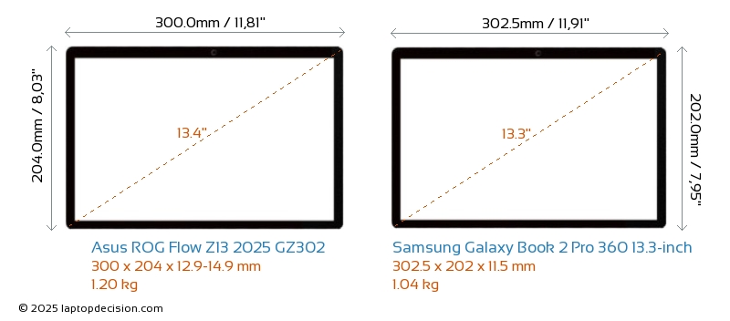 HDMI ROG Flow Z13 2025 GZ302 cuenta con un puerto HDMI (1x HDMI 2.1) para conectar a monitores externos. Galaxy Book 2 Pro 360 13.3-inch no tiene puerto HDMI.