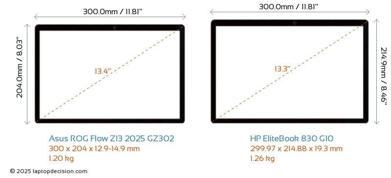 HDMIAmbos ROG Flow Z13 2025 GZ302 y EliteBook 830 G10 cuentan con un puerto HDMI (1x HDMI 2.1) para conectar a monitores externos.