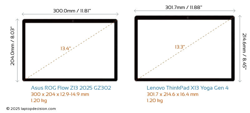 Thunderbolt ThinkPad X13 Yoga Gen 4 está equipado con un puerto Thunderbolt 4. ROG Flow Z13 2025 GZ302 no tiene puerto Thunderbolt.