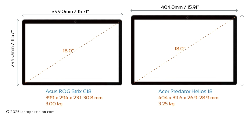 HDMIAmbos ROG Strix G18 y Predator Helios 18 cuentan con un puerto HDMI (1x HDMI 2.1) para conectar a monitores externos.