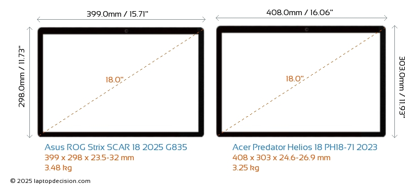 HDMIAmbos ROG Strix SCAR 18 2025 G835 y Predator Helios 18 PH18-71 2023 cuentan con un puerto HDMI (1x HDMI 2.1) para conectar a monitores externos.