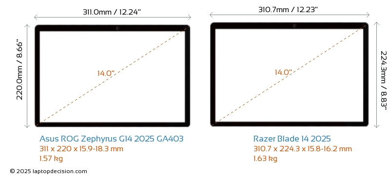 USBAmbos ROG Zephyrus G14 2025 GA403 y Blade 14 2025 cuentan con 2x USB 3.2 puertos USB-A.Ambos ROG Zephyrus G14 2025 GA403 y Blade 14 2025 cuentan con 2x USB 4.0 puertos USB Type-C.