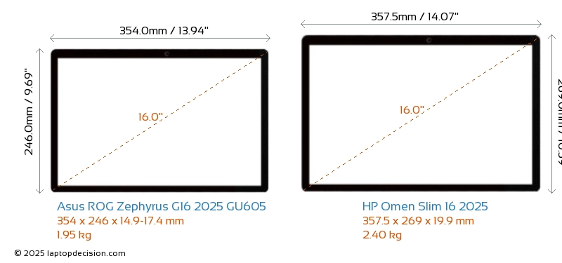 HDMIAmbos ROG Zephyrus G16 2025 GU605 y Omen Slim 16 2025 cuentan con un puerto HDMI (1x HDMI 2.1) para conectar a monitores externos.