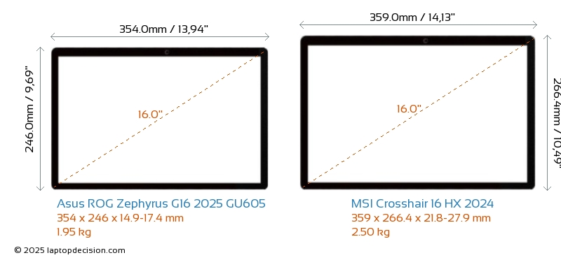 Thunderbolt ROG Zephyrus G16 2025 GU605 está equipado con un puerto Thunderbolt 4. Crosshair 16 HX 2024 no tiene puerto Thunderbolt.
