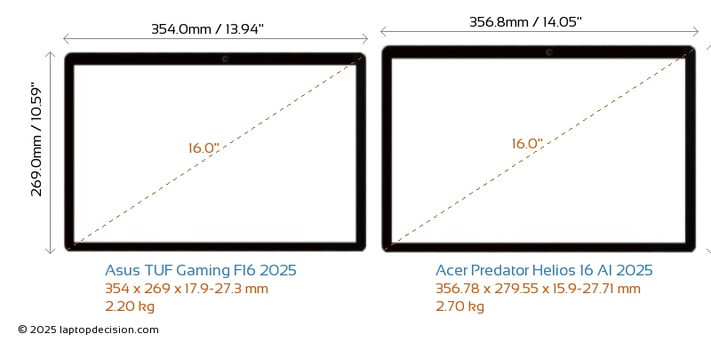HDMIAmbos TUF Gaming F16 2025 y Predator Helios 16 AI 2025 cuentan con un puerto HDMI (1x HDMI 2.1) para conectar a monitores externos.