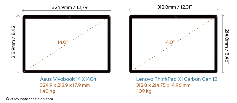 Thunderbolt ThinkPad X1 Carbon Gen 12 está equipado con un puerto Thunderbolt 4. Vivobook 14 X1404 no tiene puerto Thunderbolt.