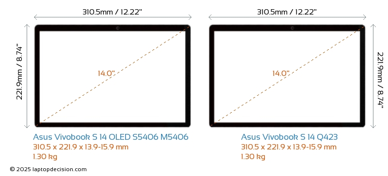 USBAmbos Vivobook S 14 OLED S5406 M5406 y Vivobook S 14 Q423 cuentan con 2x USB 3.2 puertos USB-A.Ambos Vivobook S 14 OLED S5406 M5406 y Vivobook S 14 Q423 cuentan con 2x USB 4.0 puertos USB Type-C.
