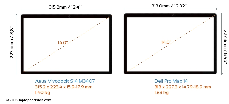 HDMIAmbos Vivobook S14 M3407 y Pro Max 14 cuentan con un puerto HDMI (1x HDMI 2.1) para conectar a monitores externos.