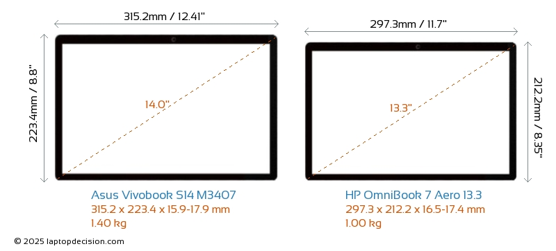 HDMIAmbos Vivobook S14 M3407 y OmniBook 7 Aero 13.3 cuentan con un puerto HDMI (1x HDMI 2.1) para conectar a monitores externos.
