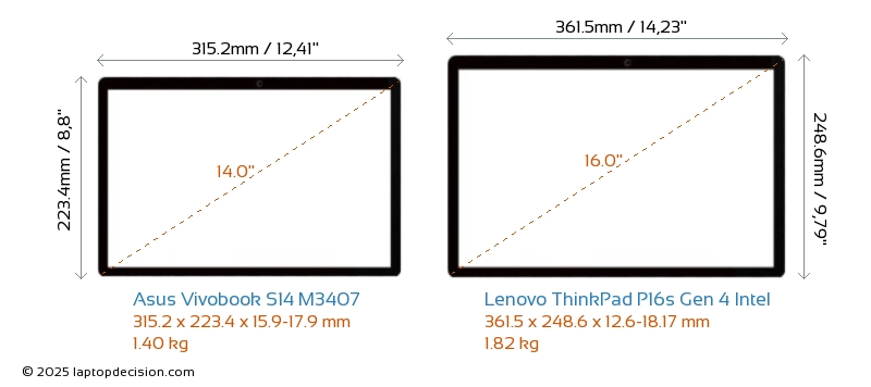 HDMIAmbos Vivobook S14 M3407 y ThinkPad P16s Gen 4 Intel cuentan con un puerto HDMI (1x HDMI 2.1) para conectar a monitores externos.