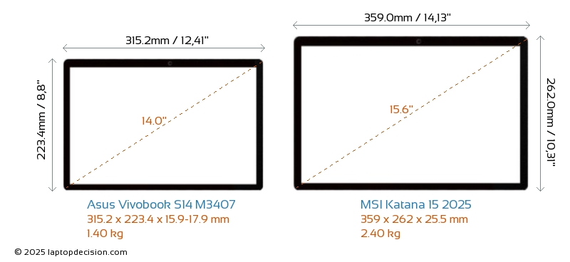 ThunderboltNinguno de los dos Vivobook S14 M3407 ni Katana 15 2025 tiene puerto Thunderbolt.