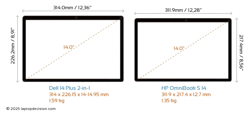 USBAmbos 14 Plus 2-in-1 y OmniBook 5 14 cuentan con 1x USB 3.2 puertos USB-A.Ambos 14 Plus 2-in-1 y OmniBook 5 14 cuentan con 2x USB 4.0 puertos USB Type-C.