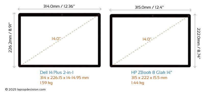USBAmbos 14 Plus 2-in-1 y ZBook 8 G1ak 14" tienen puertos USB-A. 14 Plus 2-in-1 tiene 1x USB 3.2 puertos USB-A, mientras que ZBook 8 G1ak 14" tiene 2x USB 3.2 puertos USB-A.Ambos 14 Plus 2-in-1 y ZBook 8 G1ak 14" tienen puertos USB Type-C. 14 Plus 2-in-1 tiene 2x USB 4.0 puertos USB Type-C, mientras que ZBook 8 G1ak 14" tiene 3x USB 4.0 puertos USB Type-C.