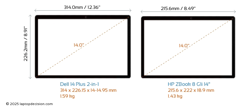 USBAmbos 14 Plus 2-in-1 y ZBook 8 G1i 14" tienen puertos USB-A. 14 Plus 2-in-1 tiene 1x USB 3.2 puertos USB-A, mientras que ZBook 8 G1i 14" tiene 2x USB 3.2 puertos USB-A.Ambos 14 Plus 2-in-1 y ZBook 8 G1i 14" tienen puertos USB Type-C. 14 Plus 2-in-1 tiene 2x USB 4.0 puertos USB Type-C, mientras que ZBook 8 G1i 14" tiene 3x USB 4.0 puertos USB Type-C.