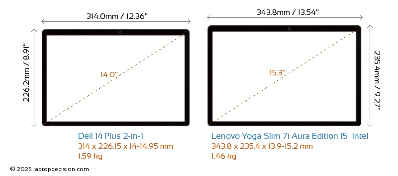 USBAmbos 14 Plus 2-in-1 y Yoga Slim 7i Aura Edition 15 Intel cuentan con 1x USB 3.2 puertos USB-A.Ambos 14 Plus 2-in-1 y Yoga Slim 7i Aura Edition 15 Intel cuentan con 2x USB 4.0 puertos USB Type-C.