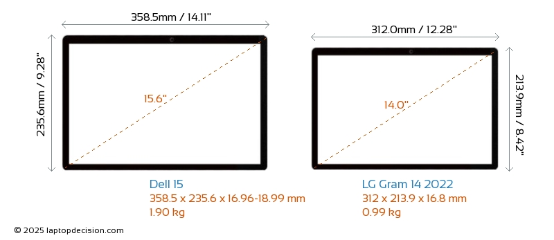 ThunderboltGram 14 2022 está equipado con un puerto Thunderbolt 4. 15 no tiene puerto Thunderbolt.