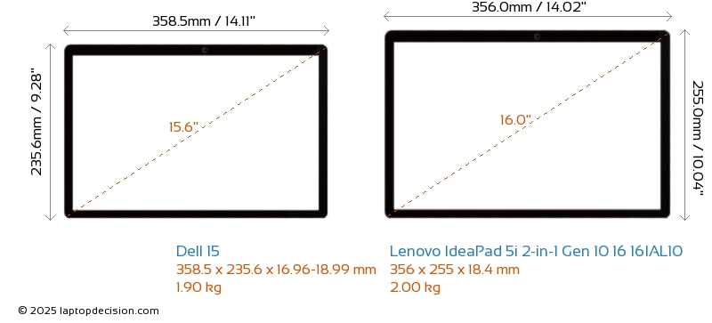 USBAmbos 15 y IdeaPad 5i 2-in-1 Gen 10 16 16IAL10 cuentan con 2x USB 3.2 puertos USB-A.Ambos 15 y IdeaPad 5i 2-in-1 Gen 10 16 16IAL10 tienen puertos USB Type-C. 15 tiene 1x USB 3.2 puertos USB Type-C, mientras que IdeaPad 5i 2-in-1 Gen 10 16 16IAL10 tiene 2x USB 4.0 puertos USB Type-C.