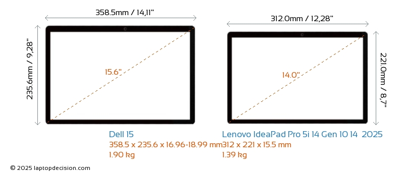 USBAmbos 15 y IdeaPad Pro 5i 14 Gen 10 14 2025 cuentan con 2x USB 3.2 puertos USB-A.Ambos 15 y IdeaPad Pro 5i 14 Gen 10 14 2025 tienen puertos USB Type-C. 15 tiene 1x USB 3.2 puertos USB Type-C, mientras que IdeaPad Pro 5i 14 Gen 10 14 2025 tiene 2x USB 4.0 puertos USB Type-C.