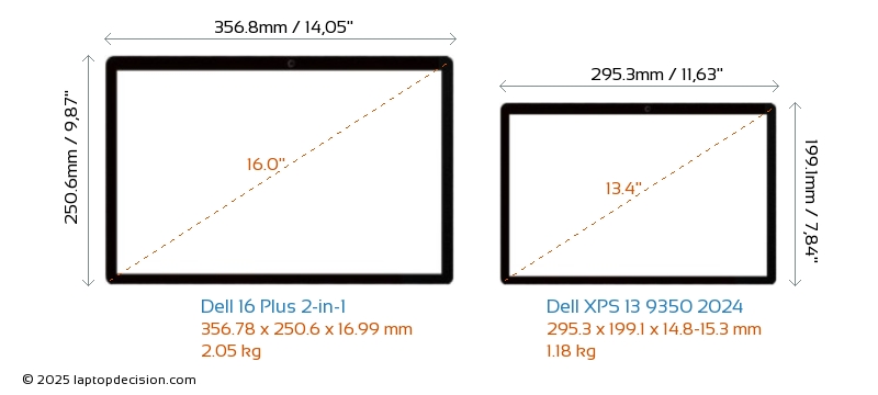 HDMI 16 Plus 2-in-1 cuenta con un puerto HDMI (1x HDMI 2.1) para conectar a monitores externos. XPS 13 9350 2024 no tiene puerto HDMI.