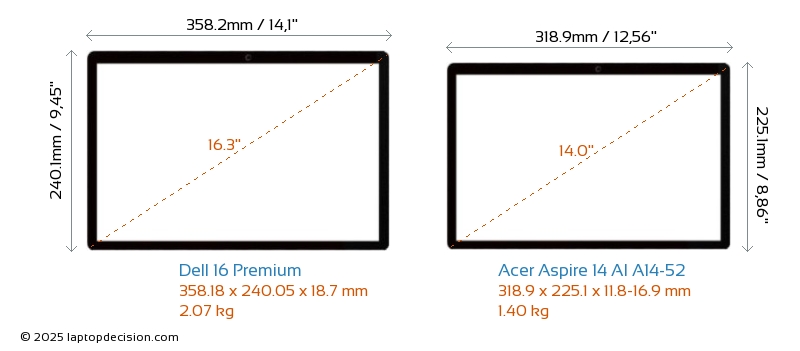 HDMI Aspire 14 AI A14-52 cuenta con un puerto HDMI (1x HDMI 2.1) para conectar a monitores externos. 16 Premium no tiene puerto HDMI.