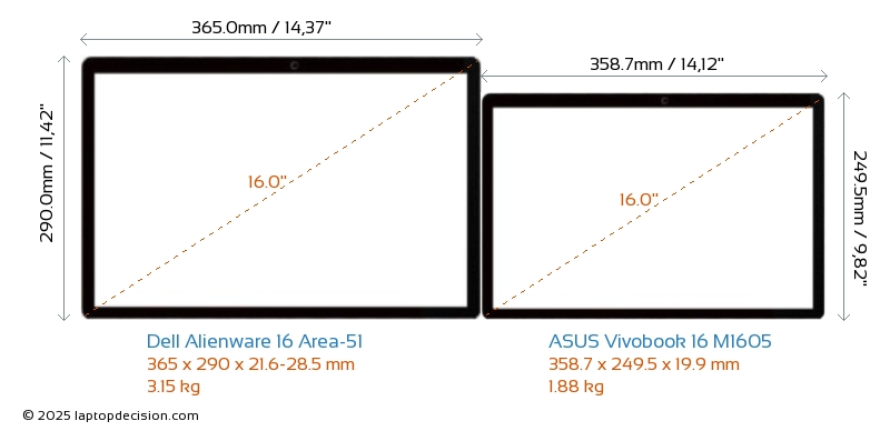 Thunderbolt Alienware 16 Area-51 está equipado con un puerto Thunderbolt 5. Vivobook 16 M1605 no tiene puerto Thunderbolt.