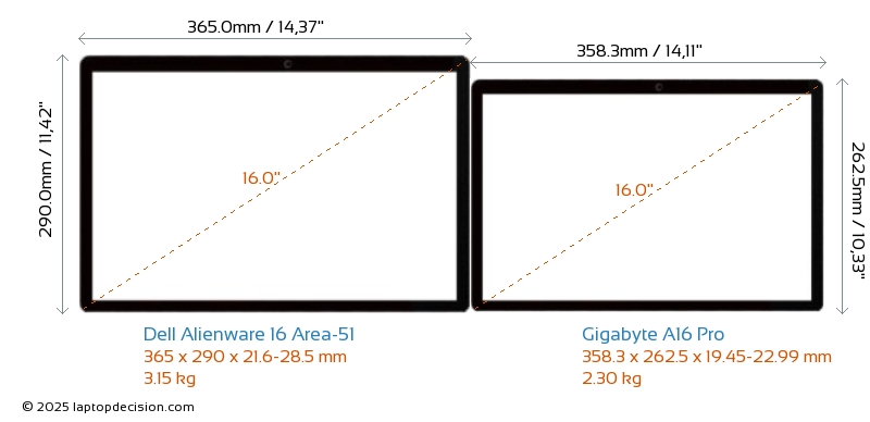 Thunderbolt Alienware 16 Area-51 está equipado con un puerto Thunderbolt 5. A16 Pro no tiene puerto Thunderbolt.