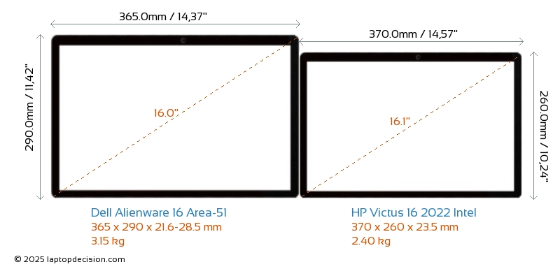 Thunderbolt Alienware 16 Area-51 está equipado con un puerto Thunderbolt 5. Victus 16 2022 Intel no tiene puerto Thunderbolt.