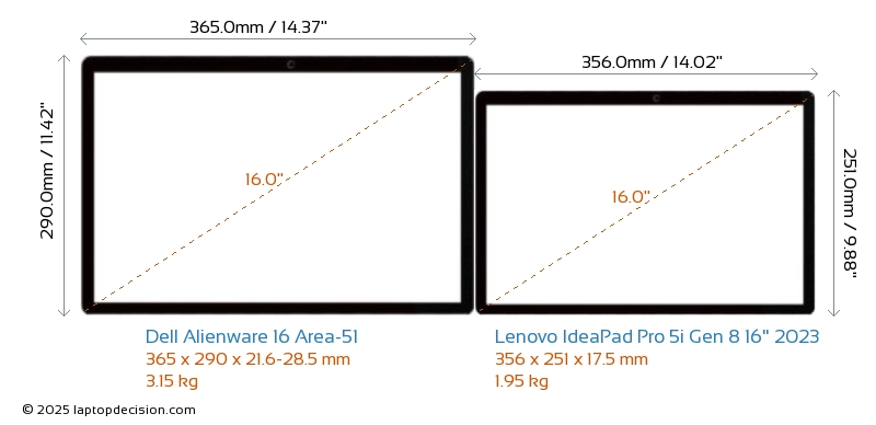 HDMIAmbos Alienware 16 Area-51 y IdeaPad Pro 5i Gen 8 16" 2023 cuentan con un puerto HDMI. Alienware 16 Area-51 ofrece 1x HDMI 2.1, mientras que IdeaPad Pro 5i Gen 8 16" 2023 ofrece 1x HDMI 2.0.