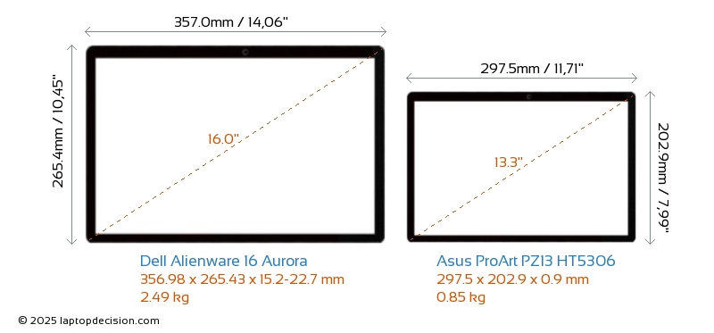 ThunderboltNinguno de los dos Alienware 16 Aurora ni ProArt PZ13 HT5306 tiene puerto Thunderbolt.